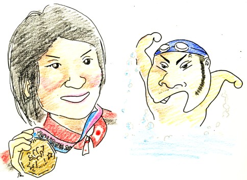くやしかろう~!!北島選手、折り返しの50mでは自己最速記録だったらしいわよ。