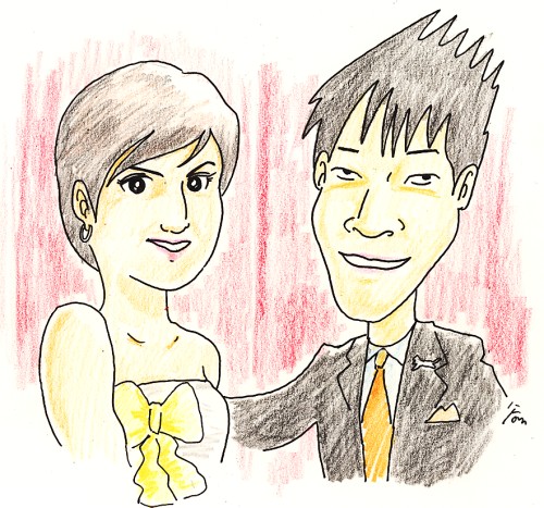 今日はどのスポーツ誌もこの話題でいっぱいなので、避けようとおもったんだけど、美女の似顔絵を描きたい衝動にかられてこの絵になっちゃいましたわ。まさかまさか、あの紀香さんが陣内さんと結婚するなんて!普段、K-1という男性ホルモンが出まくっている男たちに標的にされている職業なのでやはりそちら関連の方がお好きなのかなと思ったけど、お笑い芸人を選ぶとは思いませんでしたわ。陣内さんの、芸能界においてバラエティをなるべく避けて芸の道で自分を貫こうとしている姿勢がとても好きだけど、それだけに紀香さんはとっても苦労するんじゃないかしらね?芸人さんは女房を質に入れたりするくらいだからね。でもおめでとう!