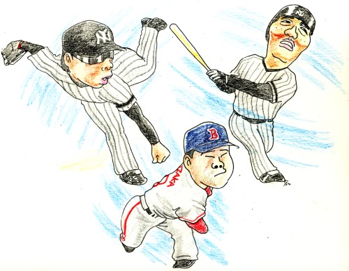 いつも松坂投手の話題ばかりであまり脚光をあびない同チームの岡島秀樹投手!ヤンキースの松井秀喜選手をみごと押さえて4打数無安打!2回を投げて無得点ということで、11試合連続無失点!う~ん、すごいわ!松坂投手が3打席を押さえたのに対してこちらは4打席だものね!しかも昔の(日本のジャイアンツでの)チームメイトですものね。
