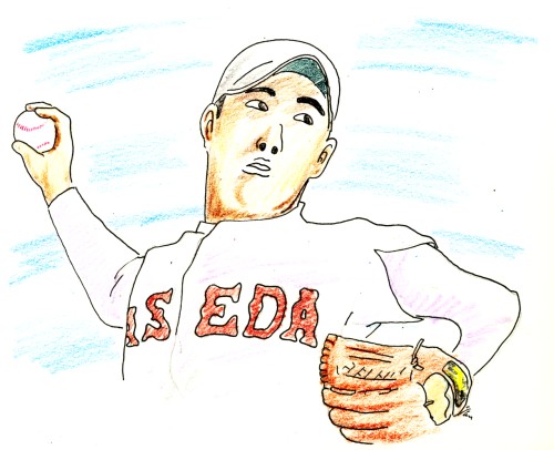 山本昌投手はあたしの家の近所出身で、しかも、あたしがつとめている会社の上司の田辺っちが大の親友ということなので、これは描かずにおられようか!